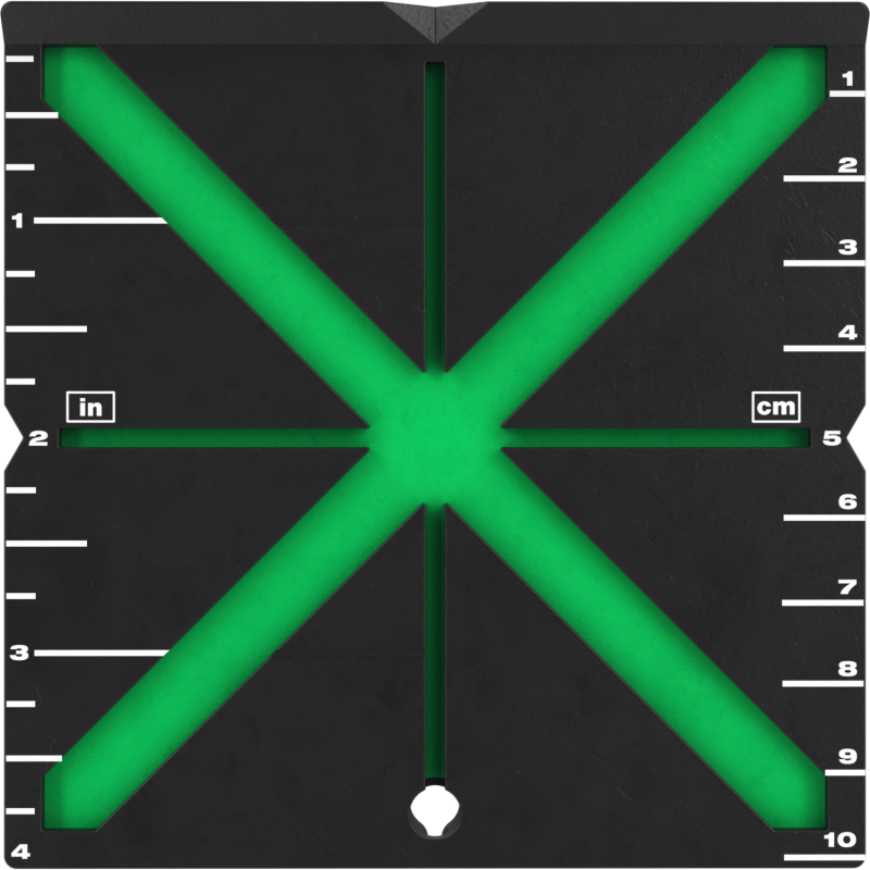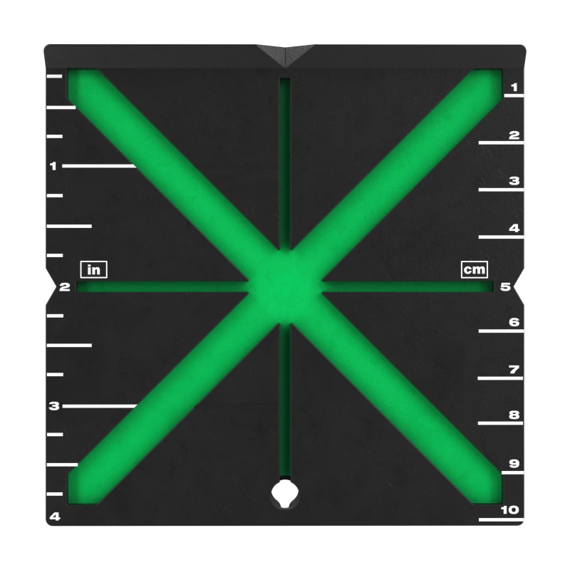 La tarjeta de alta visibilidad de MILWAUKEE® proporciona una alineación rápida y visible con una amplia base magnética para suelos y superficies ferrosas | Superficie reflectante de alto contraste para usar con láseres verdes | El diseño en X ayuda a agilizar el proceso de alineación, guiando la línea hacia el centro