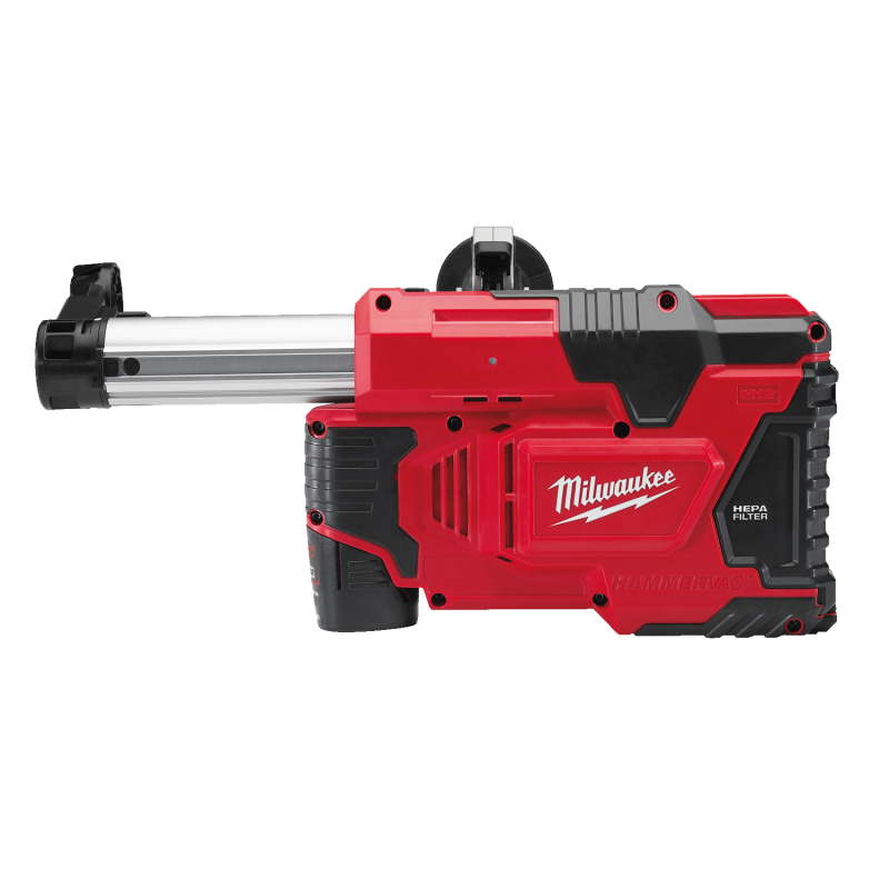 Fija en todos los martillos SDS-Plus MILWAUKEE® y en la mayoría de los competidores con cuello entre 43-59mm. Se suministra con empuñadura lateral y 3 collares diferentes | Extrae 65 agujeros de 6mm por 50mm de profundidad por carga | Electrónica REDLINK™ que protege a la máquina y a la batería contra la sobrecarga | Multifuncional. Se puede usar para la extracción de polvo como también aspirador manual | Filtro HEPA: 99,7% de eficiencia | Apagado automático después de 5 segundos, asegurando que el agujero perforado esté totalmente limpio de polvo | Monitorización individual de las celdas de la batería que optimiza la autonomía de la máquina y asegura una gran durabilidad de la batería | Indicador del nivel de carga | Electrónica REDLINK™ que protege a la máquina y a la batería contra la sobrecarga, ofreciendo la mejor durabilidad de su categoría | Las baterías REDLITHIUM™, con una construcción robusta, son capaces de ofrecer un rendimiento constante gracias a su electrónica, con mayor autonomía y más capacidad de trabajo durante toda su vida | Sistema flexible de baterías: funciona con todas las baterías MILWAUKEE® M12™