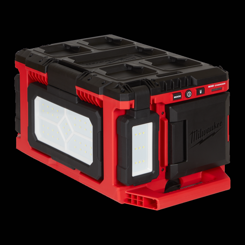 Tres cabezales independientes pivotantes que proporcionan 3.000 lúmenes de alta definición TRUEVIEW™ | Los tres cabezales de luz pivotantes combinados ofrecen hasta 12 horas de autonomía con una batería M18™ REDLITHIUM™ 5.0Ah | Clasificación IP54: resistente a salpicaduras de agua y al polvo | Función de cargador incorporada para una carga rápida de cualquier batería M18™ o dispositivos electrónicos a través del puerto de salida USB de 2.1A | Compatibilidad total con el sistema modular de almacenamiento PACKOUT™, la luz funciona suelta o como parte de la pila PACKOUT™ | Versatilidad AC/DC: alimentado con baterías MILWAUKEE® M18™ o conectado a la corriente | Compartimento de almacenamiento para dispositivos y objetos pequeños | 9 modos de iluminación para gestionar la potencia y la autonomía | Indicador de batería baja, la luz parpadea cuando la batería tiene poca carga | Sistema flexible de baterías: funciona con todas las baterías M18™ de MILWAUKEE®