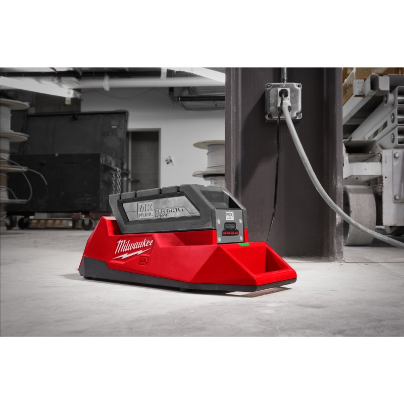 Carga una batería MXF CP203 en 55 minutos | Carga una batería MXF XC406 en 90 minutos | La inteligencia REDLINK™ optimiza el ratio de carga (4.5A/h) para cada batería para minimizar el tiempo de carga | El ventilador interior optimiza el tiempo de carga y rendimiento | La luz LED indica el 80% del estado de carga por debajo de 30/55 minutos (CP/XC) | Asa de transporte incluida