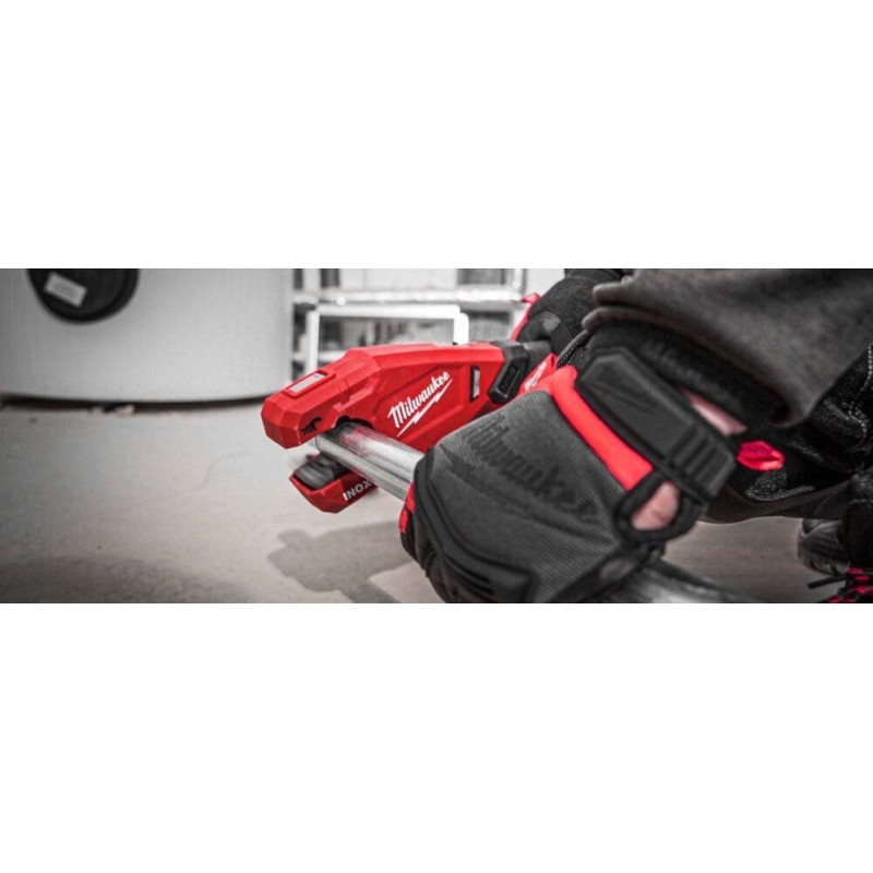 La cortadora de tubo de INOX subcompacta M12™ RAPTOR es la primera cortadora de tubos de 12V capaz de cortar tubo instalado de acero inoxidable, acero al carbono y cobre, desde 12mm hasta 28mm | El motor de alto rendimiento de 380rpm corta tubo de acero inoxidable de 28mm en menos de 20 segundos | Hasta 90 cortes en acero inoxidable de 15mm con una batería M12™ de 2.0Ah | El mecanismo de corte con bloqueo automático corta tubo instalado con tan solo 40mm de espacio libre | Las mordazas de ajuste automático se ajustan automáticamente al tamaño del tubo | Capaz de cortar acero inoxidable, acero al carbono y cobre de 12mm, 15mm, 18mm, 22mm, 28mm | Cabezal completamente metálico y sellado - el cabezal resistente al óxido y la corrosión y el sistema de drenaje interno hacen que la herramienta sea resistente al agua | Ventana para ver la línea de corte e iluminación incorporada, permiten al usuario cortar el tubo con precisión | Indicador de carga y luz LED integrado | El motor con escobillas premium de 4 polos, la batería REDLITHIUM™ y la electrónica REDLINK™ ofrecen la potencia, autonomía y durabilidad necesarias | Sistema flexible de baterías: funciona con todas las baterías M12™ de MILWAUKEE®