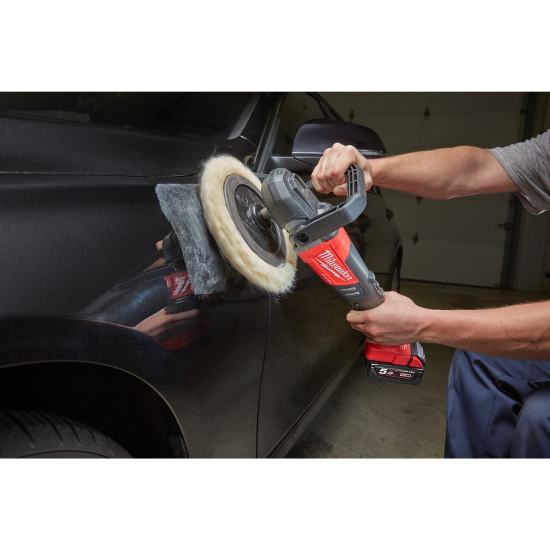 Diseñado y contruido por MILWAUKEE®, motor sin escobillas POWERSTATE™ que ofrece la máxima movilidad en el pulido de coches | El sistema de inteligencia REDLINK PLUS™ es una protección digital avanzada contra la sobrecarga que protege tanto a la batería como a la herramienta, mejorando su rendimiento de trabajo bajo carga | Las baterías REDLITHIUM™, con una construcción robusta, son capaces de ofrecer un rendimiento constante gracias a su electrónica, con mayor autonomía y más capacidad de trabajo durante toda su vida | La primera pulidora sin cable a nivel mundial con 8 posiciones de velocidad variable desde 360 - 2.200rpm | Autonomía inigualable capaz de pulir un coche con una carga de batería | Electrónica de velocidad constante con arranque suave | Máximo diámetro de accesorios de pulido de 180mm | Protector de polvo desmontable para evitar la entrada de desechos y aumentar la vida del motor | Caja de engranajes engomada para aumentar la comodidad, especialmente cuando se trabaja con la herramienta en posición vertical | Interruptor con función de bloqueo que lo hace más cómodo en trabajos de pulido de larga duración | 3 posiciones de la empuñadura auxiliar para mejorar el control de la máquina | Función de relé de baja tensión que evita el arranque automático después de la carga de la batería | *Pintura en un moderado buen estado, arañazos ligeros | Sistema flexible de batería: funciona con todas las baterías MILWAUKEE® M18™