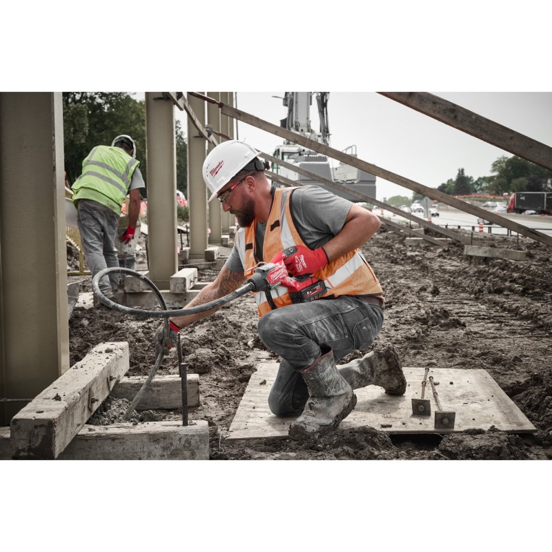 Vibrador de hormigón de aguja M18 FUEL™ para consolidar hormigón, con un diseño compacto | Vibrador de hormigón de aguja de 1,2m recomendado para zapatas o pequeños solados (M18 FCVN12) | Vibrador de hormigón de aguja de 2,4m recomendado para paredes y columnas (M18 FCVN24) | Diseño de aguja de 25mm² y 12.500vpm para una potencia de consolidación mejorada | Gatillo de velocidad variable para una adaptación ideal a cada material y tamaño de encofrado | Gancho incluido para cuando la herramienta no esté en uso se pueda sujetar al encofrado o al andamio | Peso ligero para un cómodo manejo y transporte | Potencia para consolidar hasta un camión de hormigón (8m³) con una batería de M18™ 5.5Ah HIGH OUTPUT™ | El sistema de herramientas eléctricas HIGH OUTPUT™ eleva la tecnología M18 FUEL™ al siguiente nivel y ofrece un rendimiento y un tiempo de funcionamiento mayores. Estas herramientas están diseñadas para maximizar su rendimiento con las baterías HIGH OUTPUT™ | Sistema flexible de batería: funciona con todas las baterías MILWAUKEE® M18™