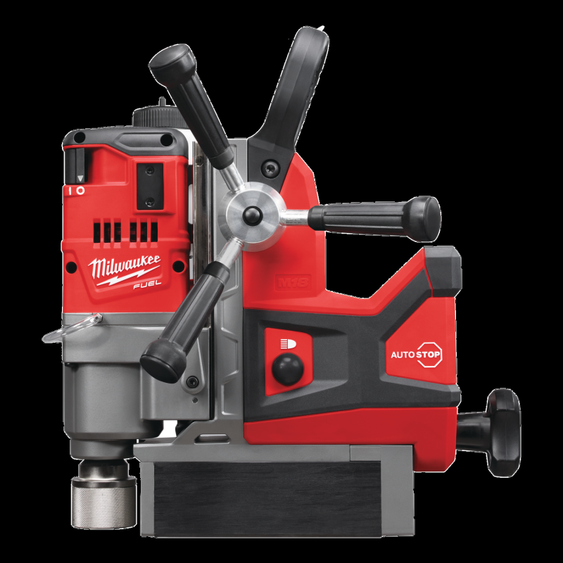 Motor sin escobillas POWERSTATE™ diseñado y construido por MILWAUKEE® que ofrece el mismo rendimiento que uno de cable en perforación y con una fuerza magnética de ¼″ en acero y 40 x 20mm agujeros por carga de batería ¼″ en acero | El sistema de inteligencia REDLINK PLUS™ es una protección digital avanzada contra la sobrecarga que protege tanto la batería como a la herramienta, mejorando su rendimiento de trabajo bajo carga | Las baterías REDLITHIUM™, con una construcción robusta, son capaces de ofrecer un rendimiento constante gracias a su electrónica, con mayor autonomía y más capacidad de trabajo durante toda su vida | Sistema AUTOSTOP™: detecta el exceso de rotación y desconecta automáticamente la máquina para mayor seguridad del usuario | Imán autoalimentado con imanes permanentes con 8.890N de fuerza de agarre, previniendo la desactivación accidental y mejorando la protección del usuario | Caja de engranajes de 2 velocidades para taladrado a 400 y 600rpm, para utilizar con fresas de corte o brocas | Capacidad máxima de perforado de 38mm con fresa y 13mm con broca | Portabrocas Weldon de 19mm para un cambio rápido y fácil del accesorio | Depósito de refrigerante con imán, para fijarlo en la máquina o el material, especialmente en posición vertical | Carrera de 146mm para utilizar diferentes accesorios | Empuñadura intercambiable sin llaves para colocar a izquierda y derecha | Luz LED integrada para una mejor visibilidad del área de trabajo | Sistema flexible de batería: funciona con todas las baterías MILWAUKEE® M18™