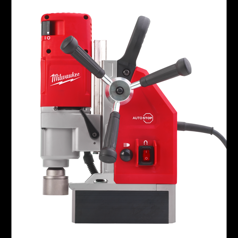 Potente motor de 1.200W con velocidad de taladrado optimizada | Caja de engranajes de 2 velocidades para optimizar la velocidad de taladrado con 475 y 730rpm | Sistema AUTOSTOP™: detecta el exceso de rotación y reduce automáticamente la potencia de perforación para proteger al usuario | Imán electrónico con 9.930N de fuerza de fijación | Máxima capacidad de perforación de 41mm con fresa y brocas tradicionales con eje de 13mm | Fijación Weldon 19mm con fijación sin llave para un cambio rápido y fácil del accesorio | Carrera de 146mm que permite el uso de diferentes accesorios | Puño desmontable que permite el uso en el lado izquierdo y derecho | LED de alta intensidad para iluminar el área de trabajo