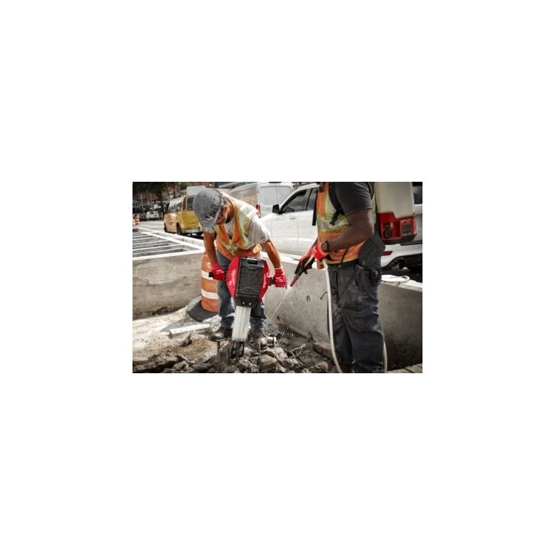 El primer martillo demoledor sin cable K-Hex 28mm, que proporciona la potencia de martillos con cable, a gasolina y neumáticos | Proporciona 64J de energía de impacto para los trabajos de demolición más duros | La tecnología antivibración en el cuerpo flotante de la máquina permite al usuario trabajar durante todo el día sin alcanzar niveles de exposición peligrosos | El bajo nivel de vibración (5,17m/s²) permite una productividad de más de 7 horas (HAVS) sin interrupciones | Eliminación rápida de material a 1.300bpm, proporcionando la máxima productividad en todas las aplicaciones | Demolición de hasta 2t de hormigón o una zanja de 12m (200mm de profundidad x 300mm de anchura) con una carga de batería MXF XC406 | Vida útil equivalente a una máquina con cable, con luz indicadora de servicio integrada que alerta al usuario cada 40 horas para engrasar la máquina | Aprovechando los puntos fuertes de la tecnología FUEL™, el sistema MX FUEL™ alcanza nuevos niveles de rendimiento a batería. Centradas en un rendimiento similar a la gasolina, el cable y el aire, estas herramientas funcionan sin los peligros asociados a las emisiones, el ruido, las vibraciones, los tropiezos y las frustraciones de un mantenimiento complejo | Tecnología ONE-KEY™ que ofrece localización y seguridad, junto con el control del inventario, para poder realizar el seguimiento de la herramienta y ayudar a prevenir robos. ONE-KEY™ también cuenta con una función de bloqueo remoto de la herramienta | Carro de transporte MXF DHT disponible por separado, con capacidad para guardar 4 cinceles, cargador y batería. Además incorpora correas para la sujeción del martillo, facilitando su transporte | Se suministra con 1x puntero K-Hex. 28mm (4932459774), 1x cincel K-Hex. 28mm (4932459775)